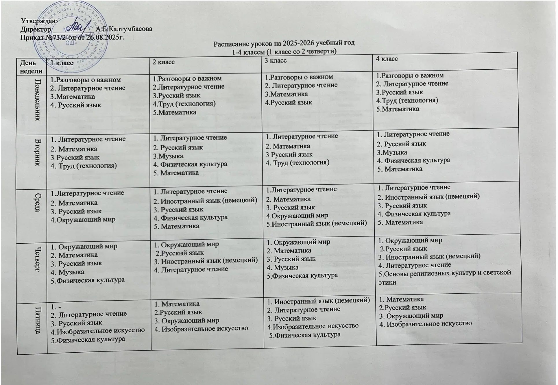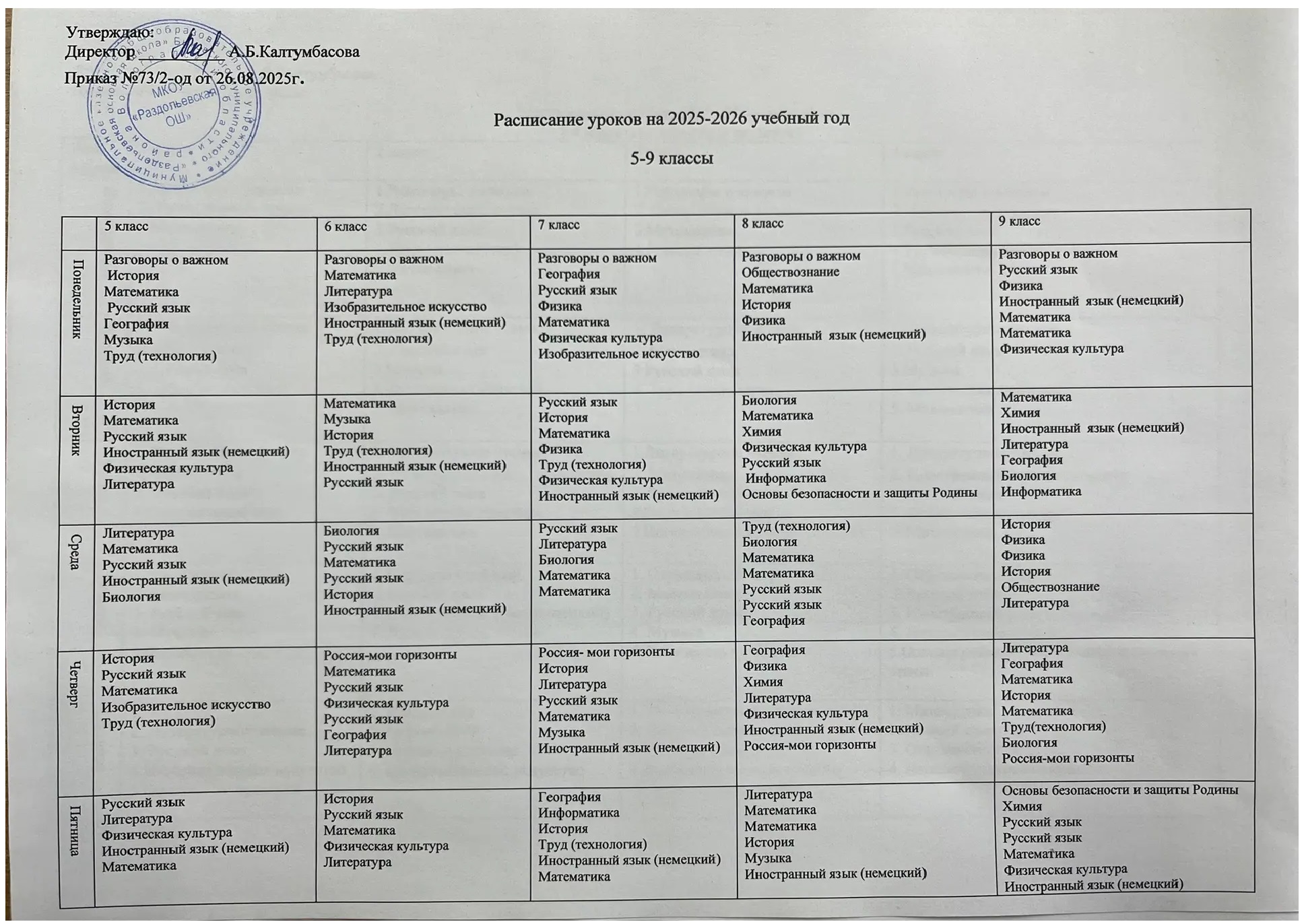 | Расписание уроков на 2025-2026 уч. г. |